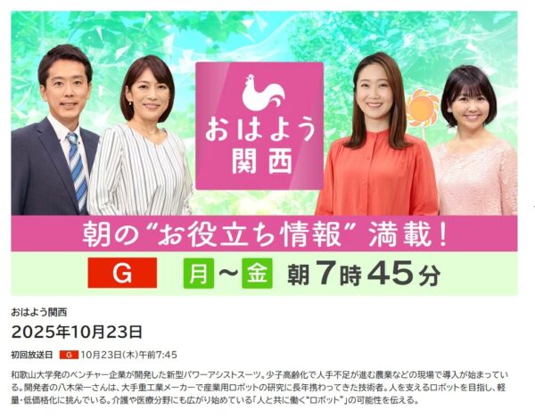 2025/10/16 | 2025年10月23日7時45分から放送されるNHKおはよう関西で弊社が紹介されます。 |