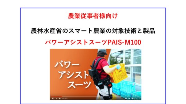 パワーアシストスーツ:PAIS-M100は、4.7kgと軽量コンパクトで、電動モータにて以下の4つのアシストが、動きに遅れずに、1台でできます。
